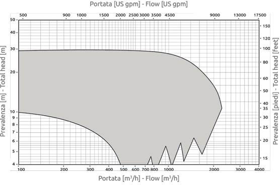 • ​High efficiency impeller and inner volute (82% ÷ 86% Best Efficiency Point)